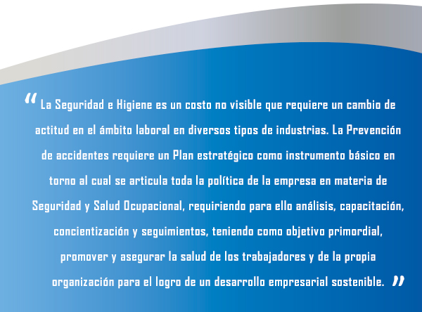 Nuestro Objetivo es lograr la formación de una conciencia social empresarial y la formación del sentido de responsabilidad en los trabajadores como una medida preventiva de enfermedades profesionales, accidentes de trabajo y cuidado del medio ambiente, en ámbitos de gestión privada o pública, donde se requiera implementar programas destinados a generar respeto por la higiene, seguridad laboral y el Medio Ambiente, tanto en las conductas individuales como colectivas.